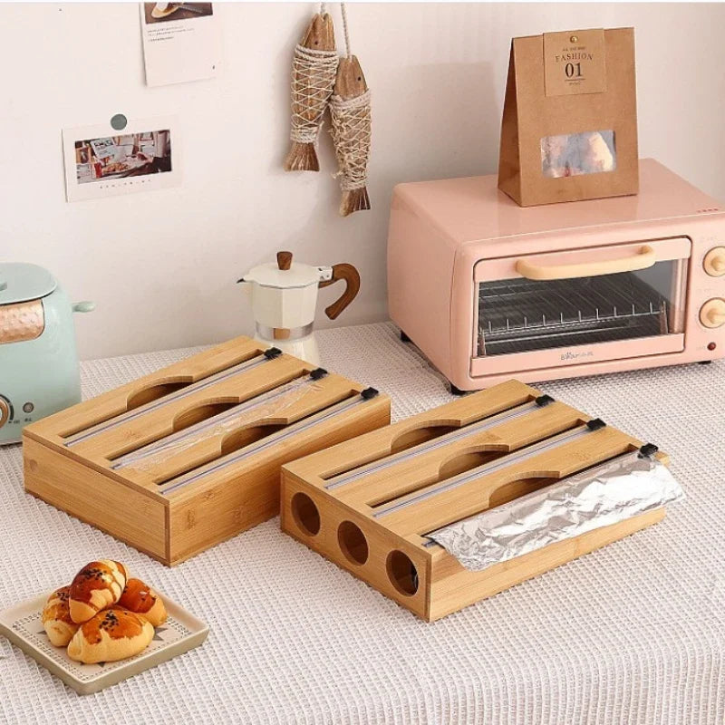 Bamboo Ziplock Food Bag Holder and Foil Dispenser Aluminum Organizer